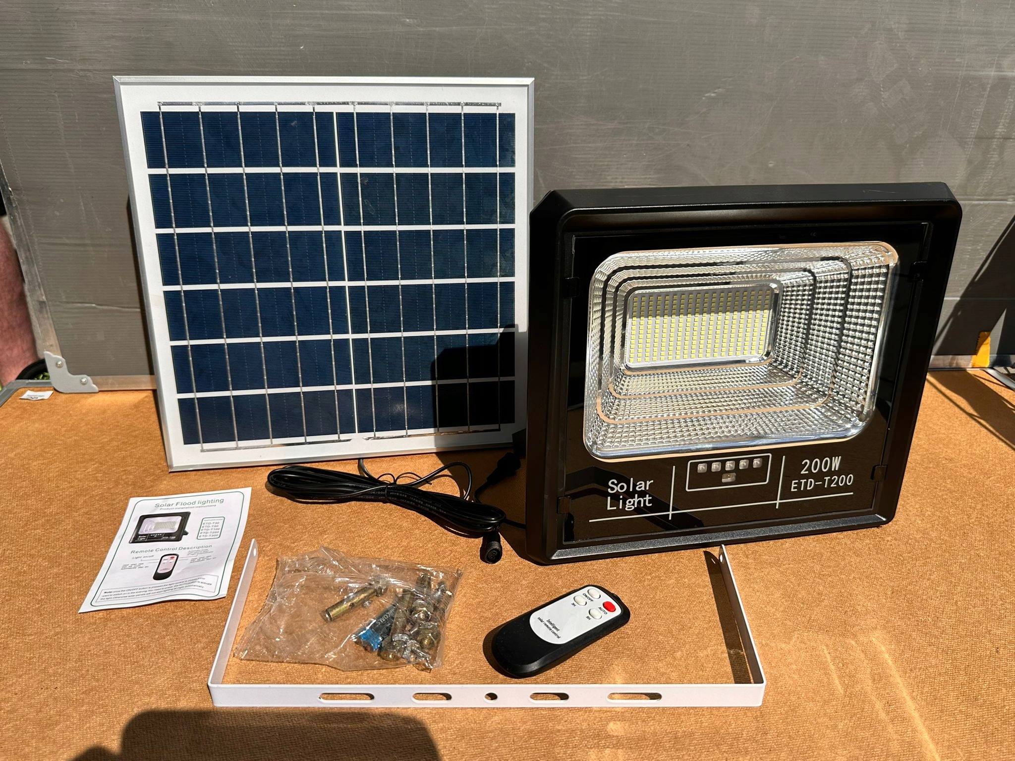 СОНЯЧНИЙ СВІТЛОДІОДНИЙ ВУЛИЧНИЙ СВІТЕЛЬНИК ДИСТАНЦІЙНИЙ ГАЛОГЕНОВА ОКРЕМА ПАНЕЛЬ ДАТЧИК СУТІНКИ 200 Вт