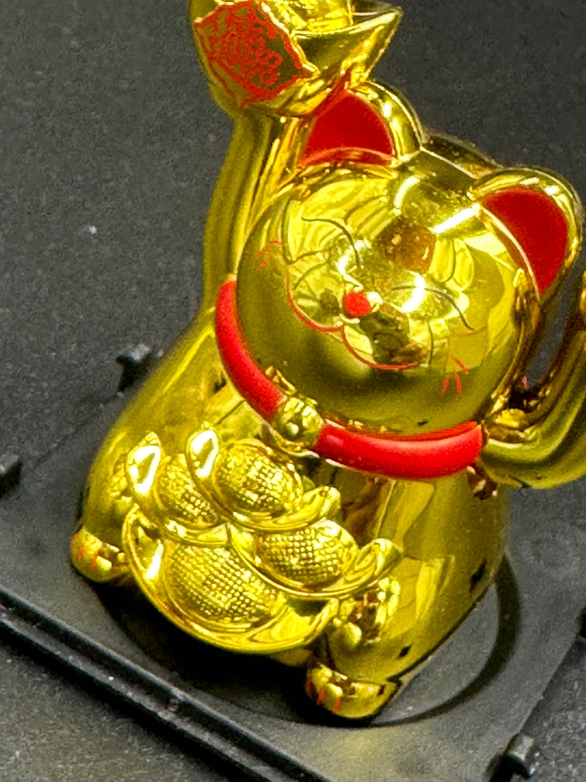 На щастя, у правій лапі китайського кота є стара японська монета. Характерною рисою кожного кота цього типу є ліва лапа, яка скликає добрі душі до господаря додому чи на роботу.