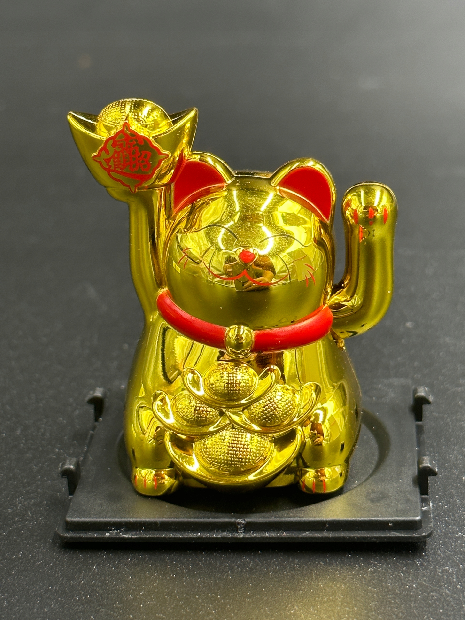 ОПИС – колір: золото, розміри (ширина/висота/товщина): 6/6/6 см, джерело живлення: світло, наприклад, кімнатна лампа, сонце, денне світло, вага: 148 г, в комплекті: кіт, пластиковий футляр.