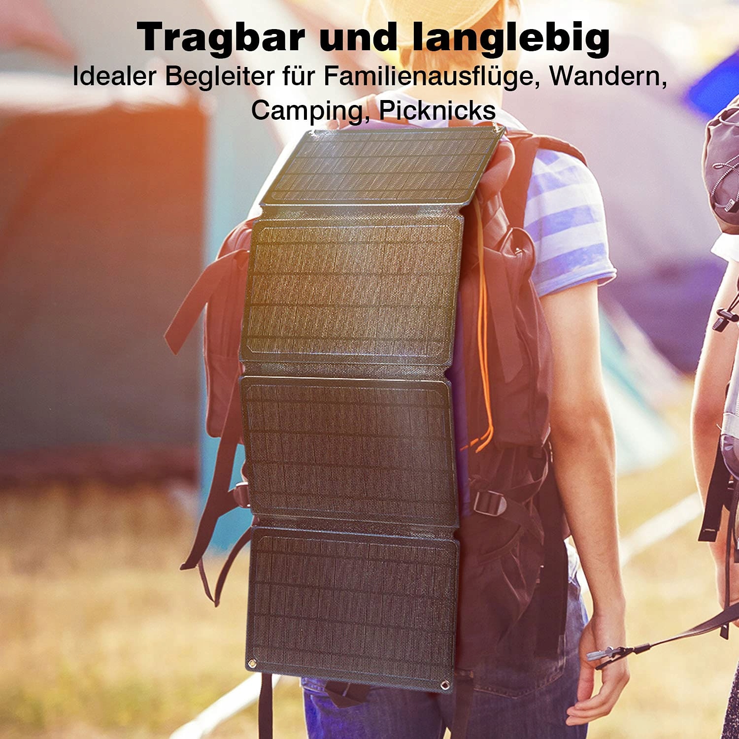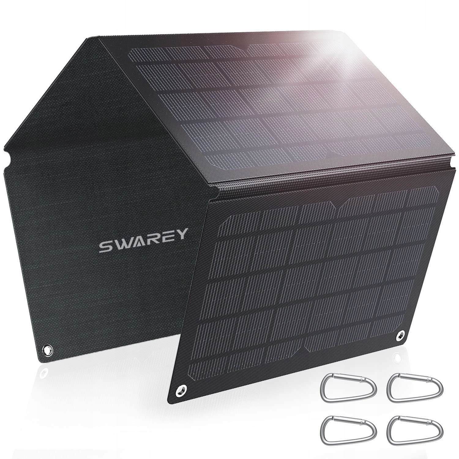 Портативна сонячна панель важить лише 850 грам (1,9 фунта), а складний формат нагадує журнал, який полегшує зберігання та транспортування. Розмір після розгортання: 28 х 73 см (11 х 28,7 дюйма). Додаткові чотири карабіни дозволяють легко з'єднати сонячну панель з рюкзаком, деревом або наметом.