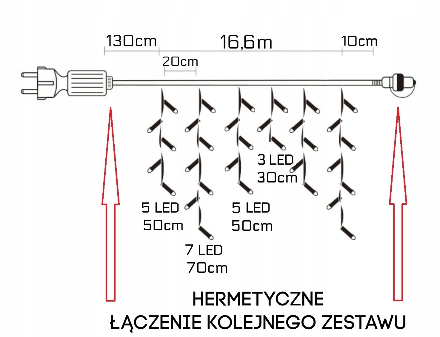 Ізольований набір з товстою вилкою. Вилка виконана застандартом IP44.Бурульки також маютьгерметичне голчасте з'єднання, що дозволяє підключати наступні набори.