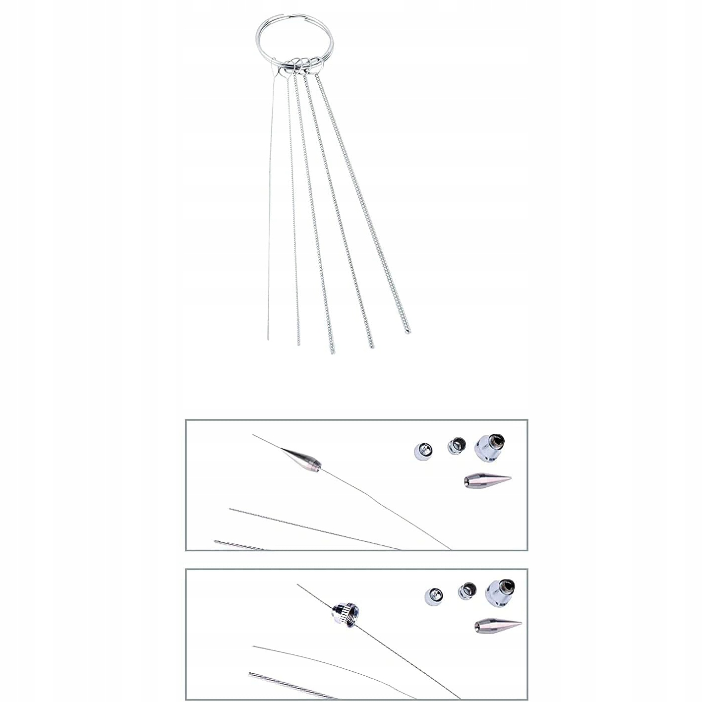 ✅ Набір розмірів і різноманітності: Набір містить 5 металевих чистячих стрижнів різних розмірів і форм, ідеально підходить для чищення форсунок і пістолетів-розпилювачів різних типів. Кожен чистячий стрижень має різний розмір, що дозволяє ефективно видаляти бруд з різних частин пістолета.
