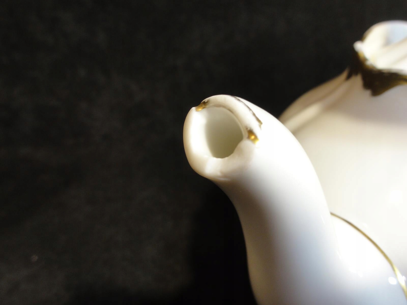 *виготовлений з білої порцеляни, оздоблений рельєфом, позолочений вручну,