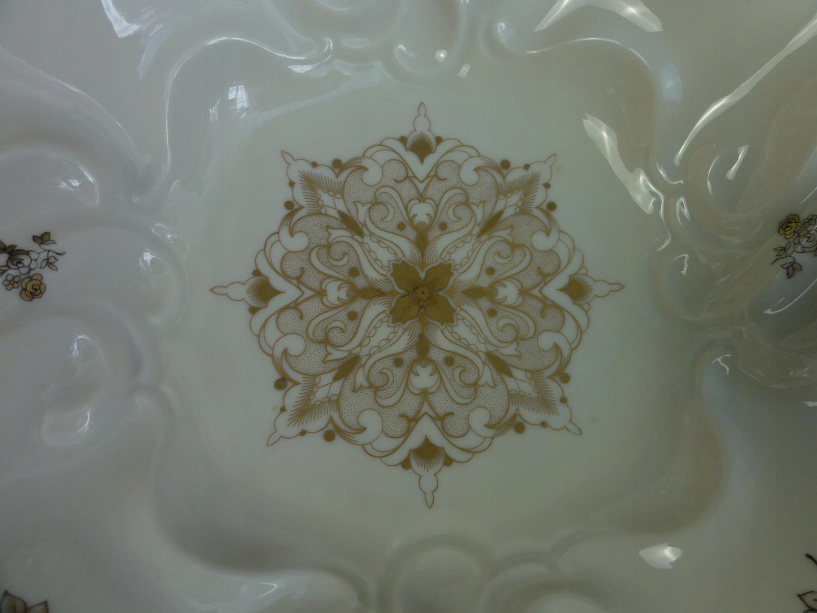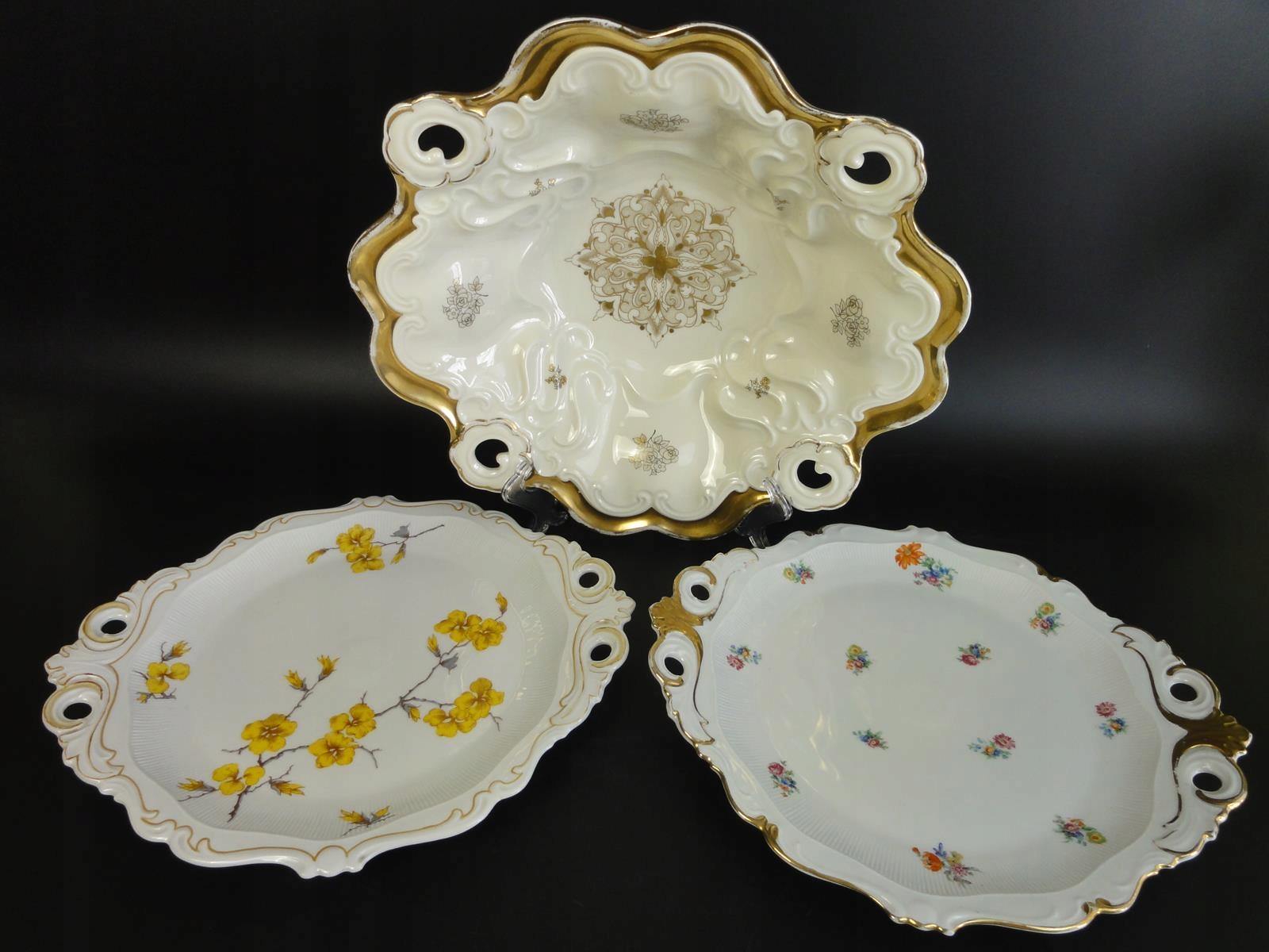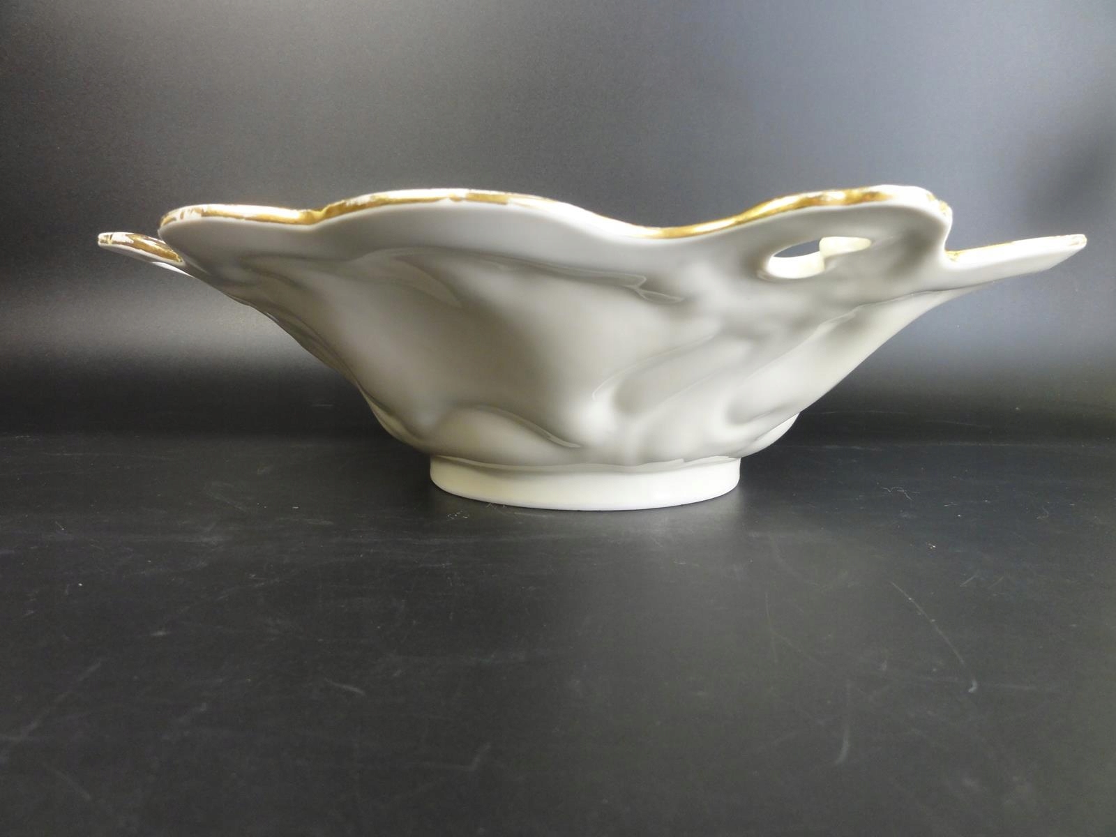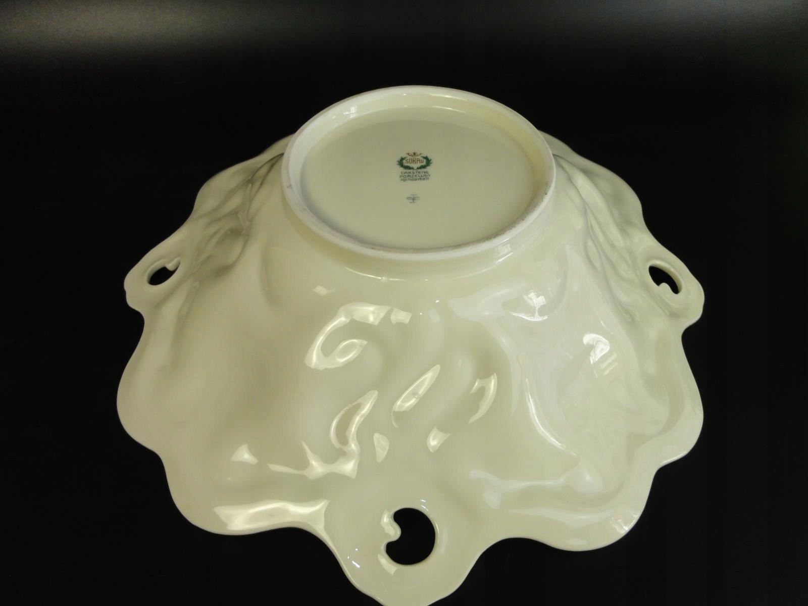 Велика тарілка фабрики Carstens у Сорау, Жари, виготовлена з порцеляни кольору екрю з ажуром, оздоблена рельєфами та позолотою.
