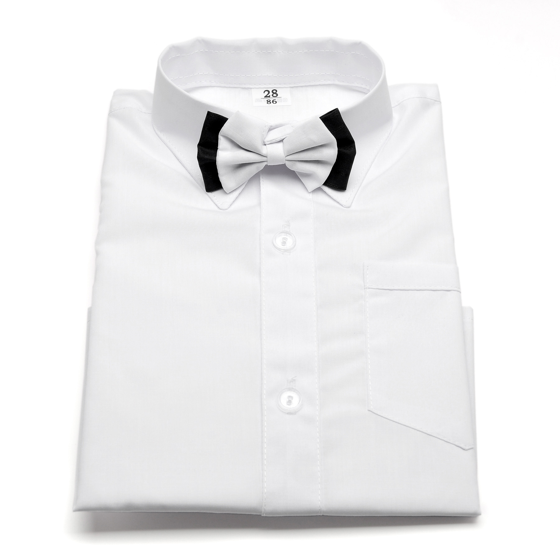 Елегантна сорочка для хлопчиків з довгими рукавами і з краваткою з лука на еластичній смузі. У ньому є кишеня спереду зліва. В ідеалі підходить для всіх видів шкільних, церковних чи сімейних святкувань.