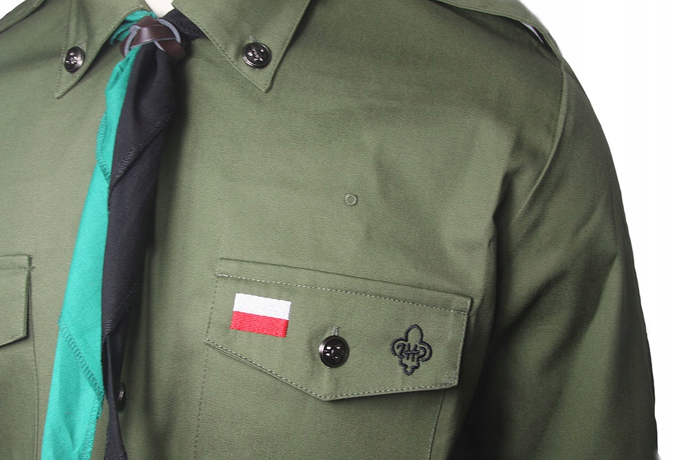 Для дівчинки підберемо сіру сорочку, а для хлопчика зелену - кольору хакі. На момент купівлі на форменній сорочці ZHP на лівій кишені нашитий прапор Польщі та логотип ZHP – характерна лілія.