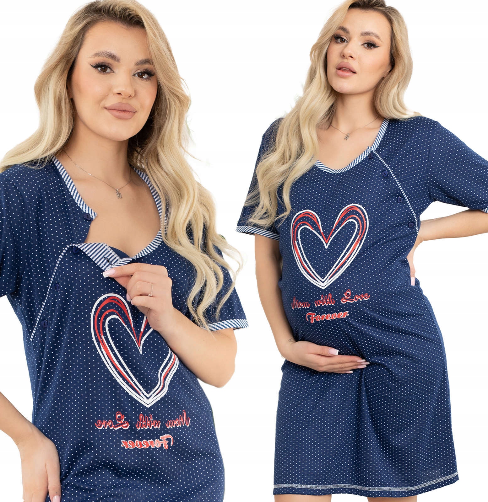 Вагітність і перше Для багатьох жінок дні після пологів - це час, коли важливий не тільки комфорт, але й відчуття привабливості. Дуже цікаво виглядають стильні лікарняні піжами. Витончені білі крапки на темно-синій сорочці для вагітних – ідеальне поєднання. Сорочка має оригінальний принт у формі серця та темно-сині гудзики-сердечка, які чудово доповнюють ціле. Крій нічної сорочки досить вільний, але в той же час не мішкуватий, тому не спотворює фігуру. Довжина до колін дозволяє почуватися комфортно як вдома, так і в лікарні.