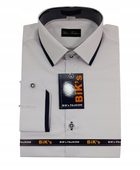 Сорочка має додаткову темно-синю вставку на комірі та манжетах.