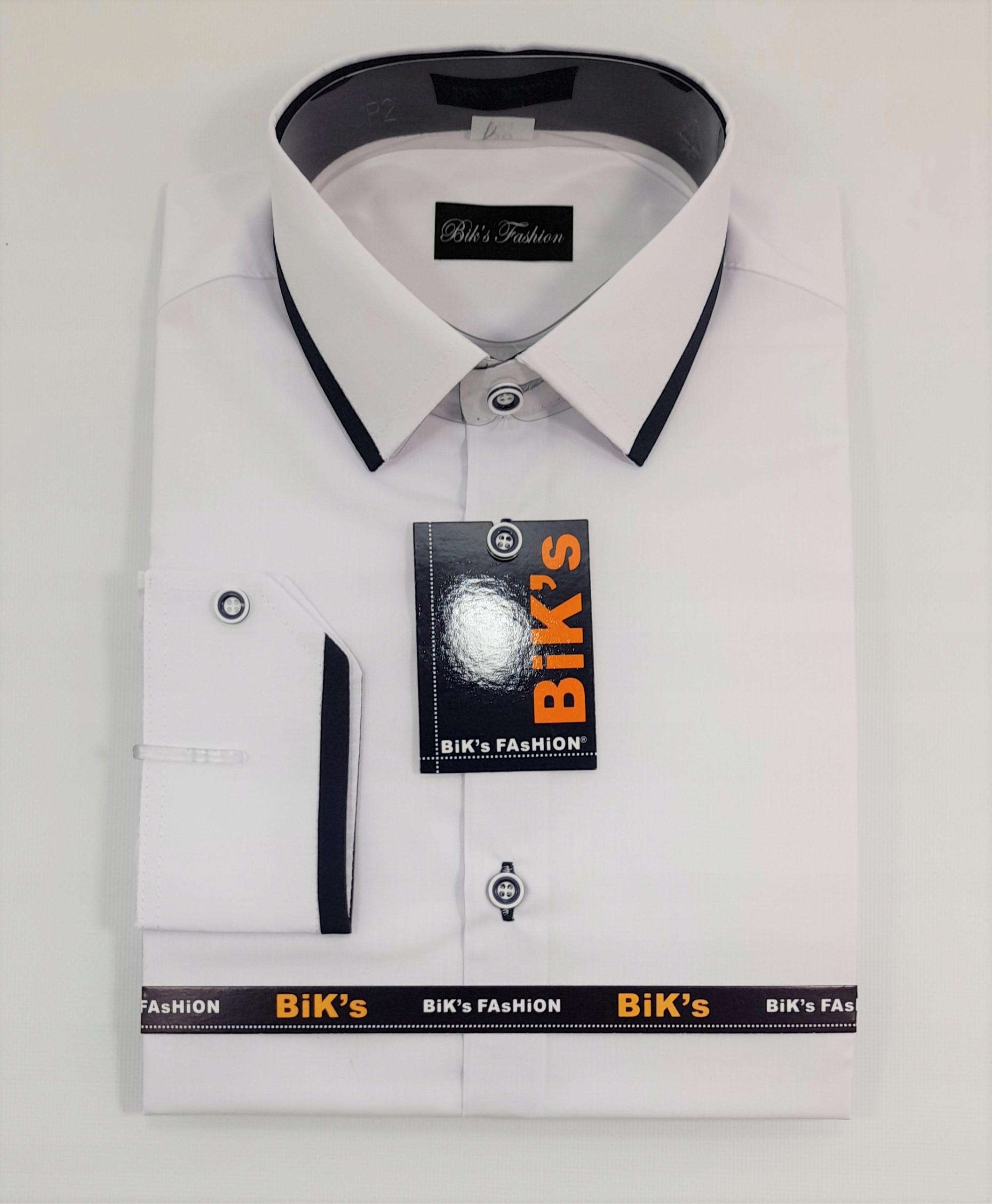 Сорочка має додаткову темно-синю вставку на комірі та манжетах.