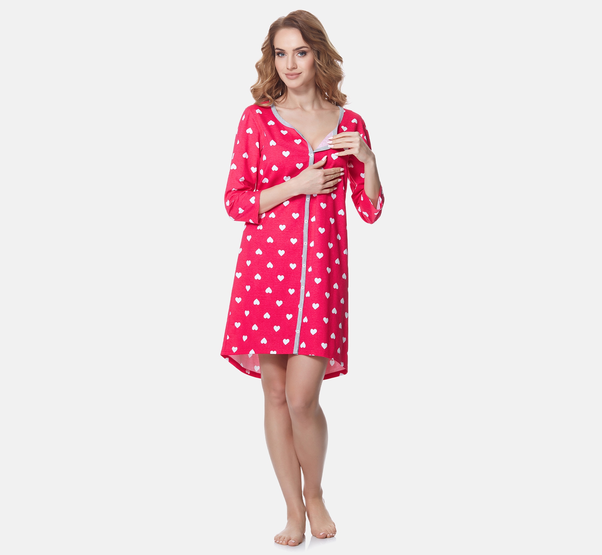 - Нічна сорочка для мам, що годують груддю; Короткий рукав; Застібається на застібки; подовжена спина; Зроблено в ЄС