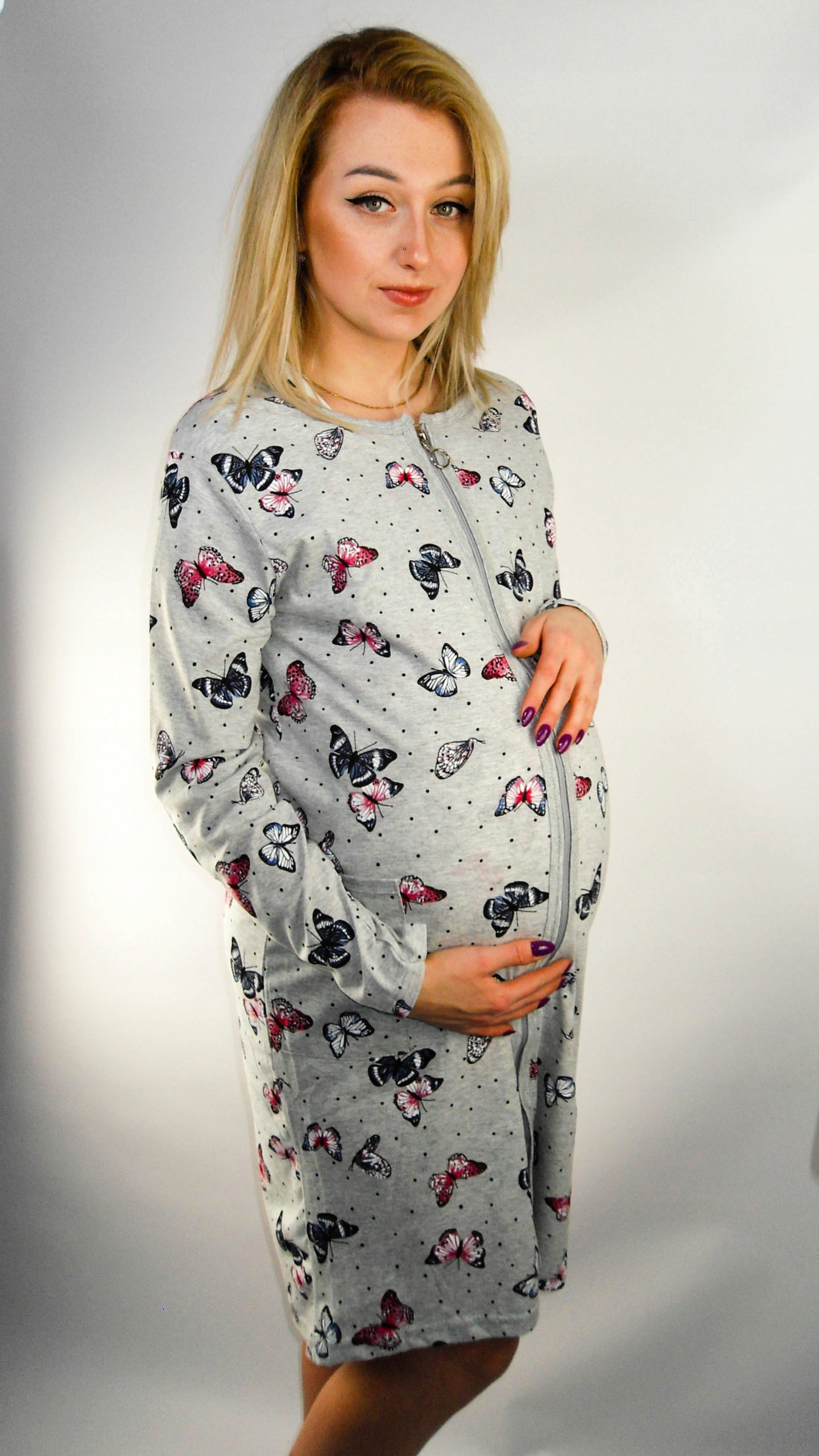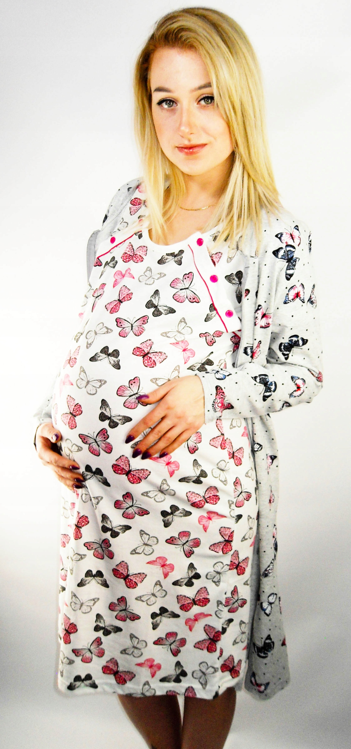 - Сконструйований виріз щоб уможливити непомітне годування дитини, застібається на кнопки.