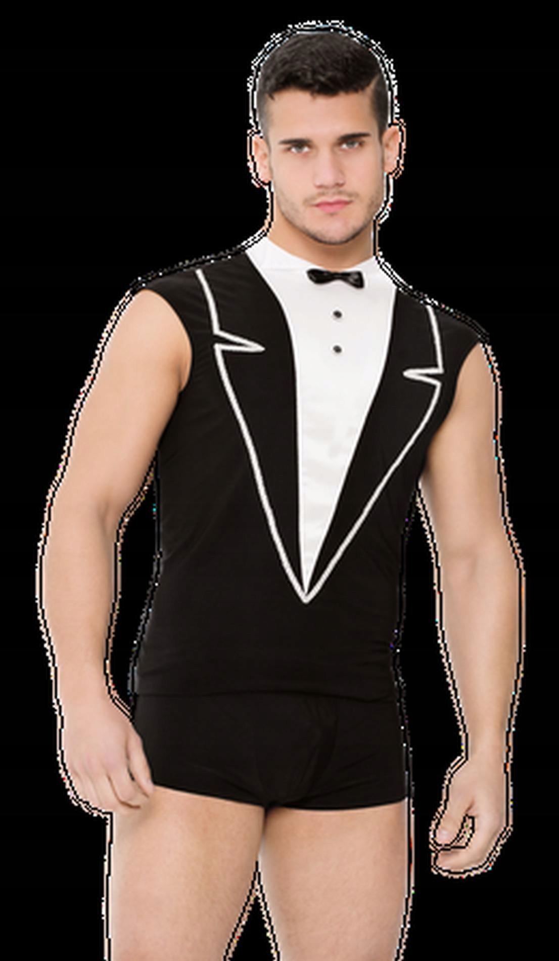 Футболка є імітацією елегантної білої сорочки з коміром, вміло поєднаної з чорним піджаком