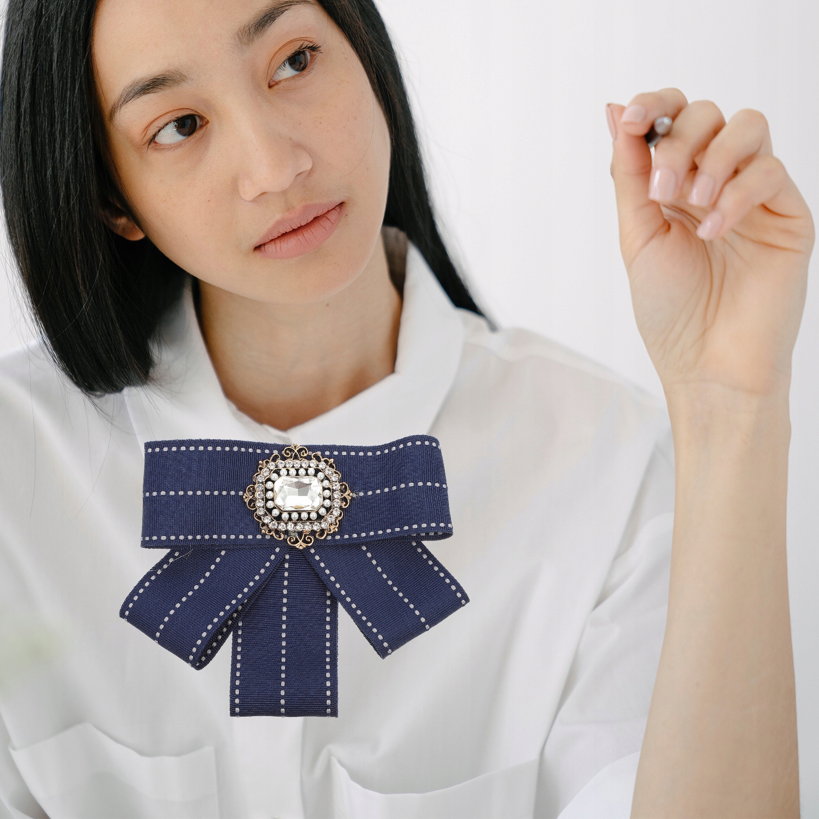 На кожній зав’язаній брошці на шиї є бантик, який підходить як для офіційних, так і для повсякденних випадків.