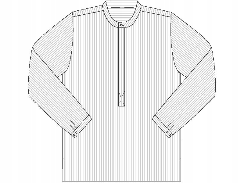 - Виріз горловини застібається на два широко розставлених ґудзики і третій, що застібає комір (так званий комір-стійка)