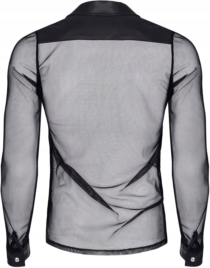 Стильний і елегантний у своїй найкращій формі. Фантастична сорочка. Виготовлений з чорного, еластичного мокрого матеріалу та приємної на дотик високоякісної сітки. Він підкреслює деталі тіла та ідеально поєднується з чорним матеріалом wetlook на комірі, манжетах і спереду. Металеві декоративні застібки додають стилю, але також невеликої вишуканості. Сорочка приталеного крою попередньої форми. Червона нашивка з алькантари з логотипом RFP і червоною строчкою підкреслюють унікальність виробу.