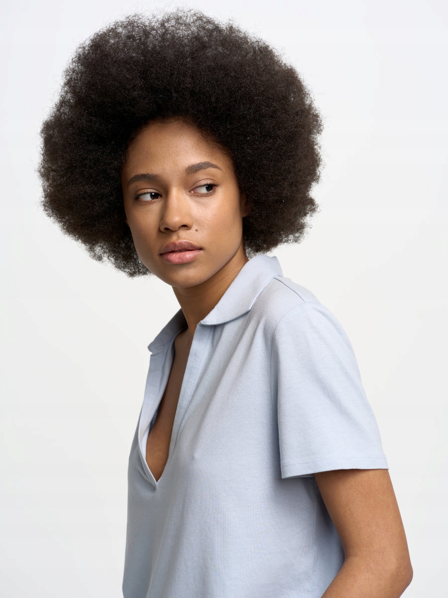 Ідеальне доповнення до будь-якого повсякденного та спортивного одягу! Виберіть комфорт і функціональність з жіночою сорочкою поло від BIG STAR. Комфортний крій у поєднанні з приємною дихаючою віскозною тканиною підійде не тільки під час активного відпочинку, але й у літню спеку. Матеріал забезпечує циркуляцію повітря, що ефективно захищає шкіру від перегріву та потовиділення. Світло-блакитну модель урізноманітнює глибокий V-подібний виріз і декоративна пластина з вшитим логотипом бренду внизу.