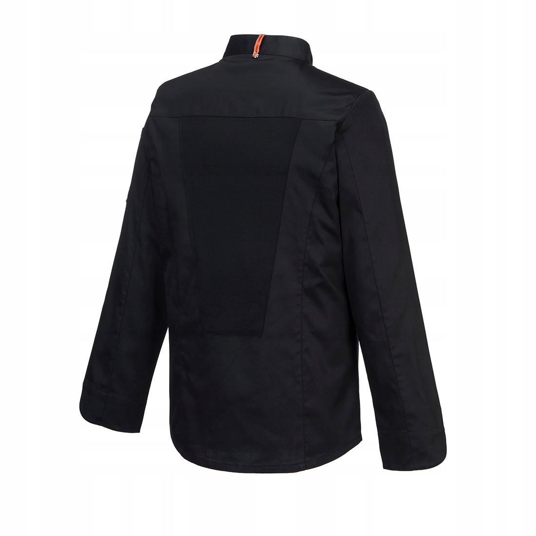 Світшот для шеф-кухаря з легкої тканини забезпечує сучасний стрункіший силует власника завдяки ергономічній формі підходить. Він має подвійну приховану застібку спереду, складку на фартуху ззаду на шиї та великі панелі MeshAir Pro на спині та під пахвами, що забезпечує чудову повітропроникність і вентиляцію.