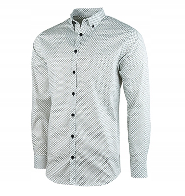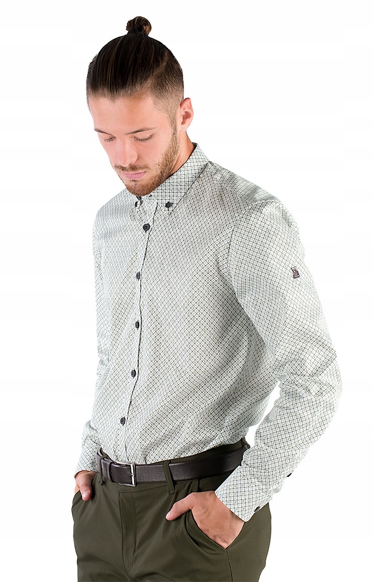 Чоловіча біла сорочка з 100% високоякісної бавовни, яка є м'якою, міцною та приємною на дотик. Має зелений принт із зображенням оленя. Все це робить цю сорочку унікальною, а завдяки своєму мисливському характеру вона чудово підійде для зустрічі з друзями чи неформальних зустрічей.