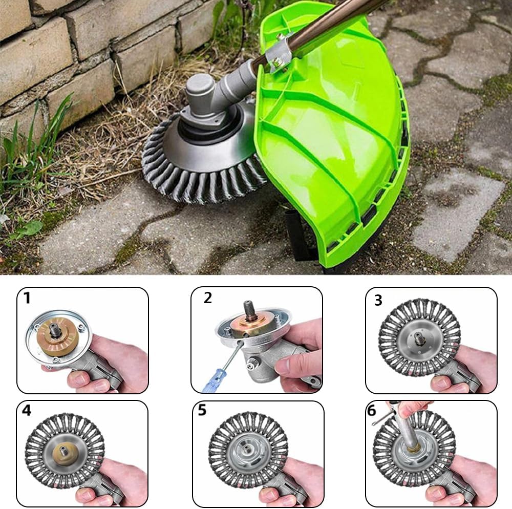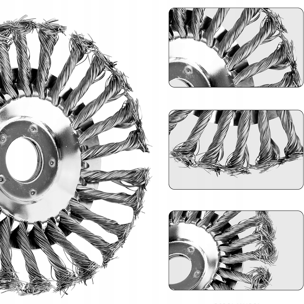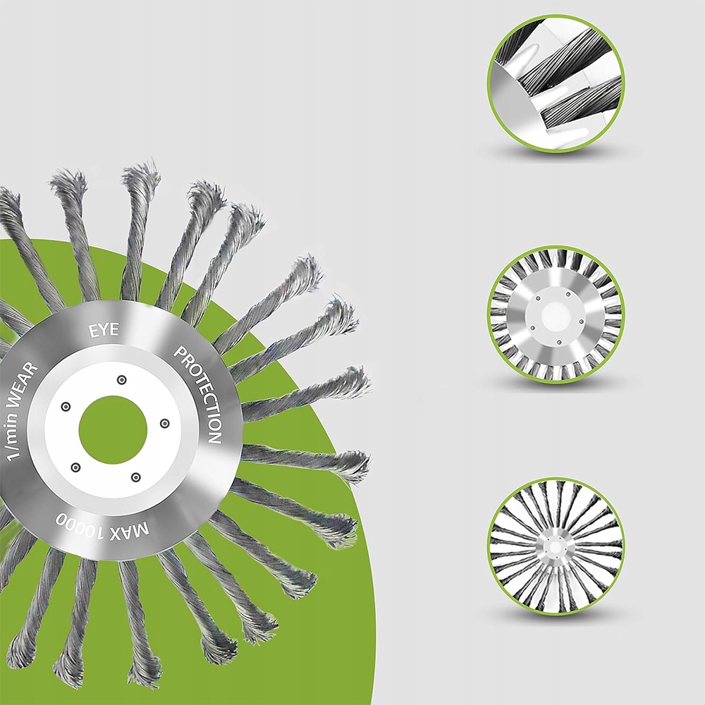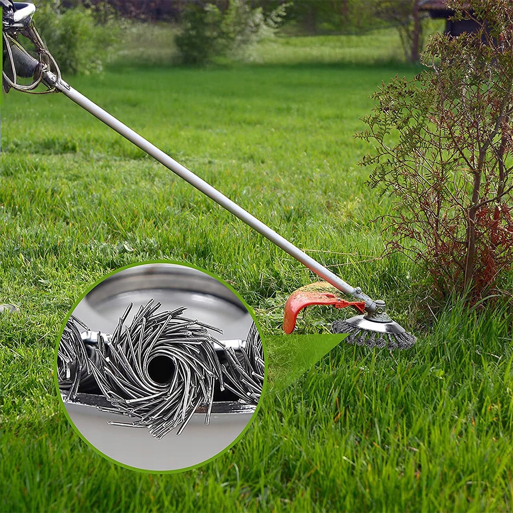 Кисть з бур’яном виготовлена з високоякісного сталевого дроту, міцного та довговічного, дріт не опускається легко. Завдяки відмінній стійкості до стирання та високому ефекту згинання, це не вплине на його дії при роботі з великою швидкістю.