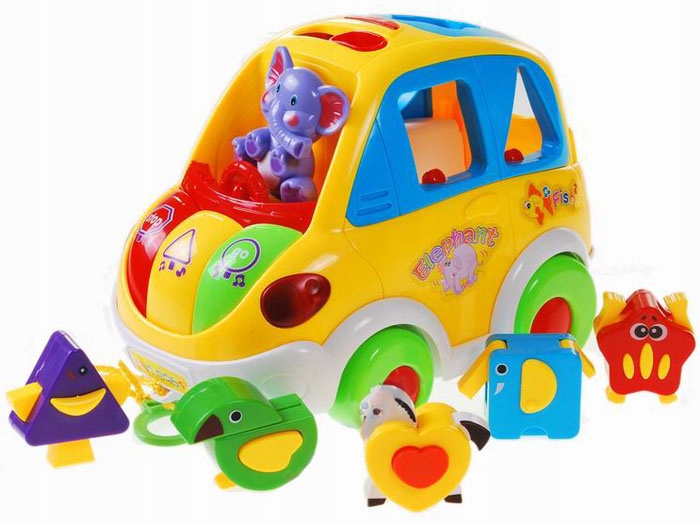 У верхній частині автомобіля в положенні "ABC" є два -етап -перемикач у положенні "ABC" під час натискання клавіш на передній частині автомобіля і вгорі або кидаючи блоки через отвори, що відповідають їх формам, вимовляють назви кольорів та форм англійською мовою. Розташований у положенні "Наткі" на вищезгаданих заходах, прикріплені до різних мелодій. На задній частині машини відчиняються двері багажника, через які ми виносимо раніше викинуті блоки.