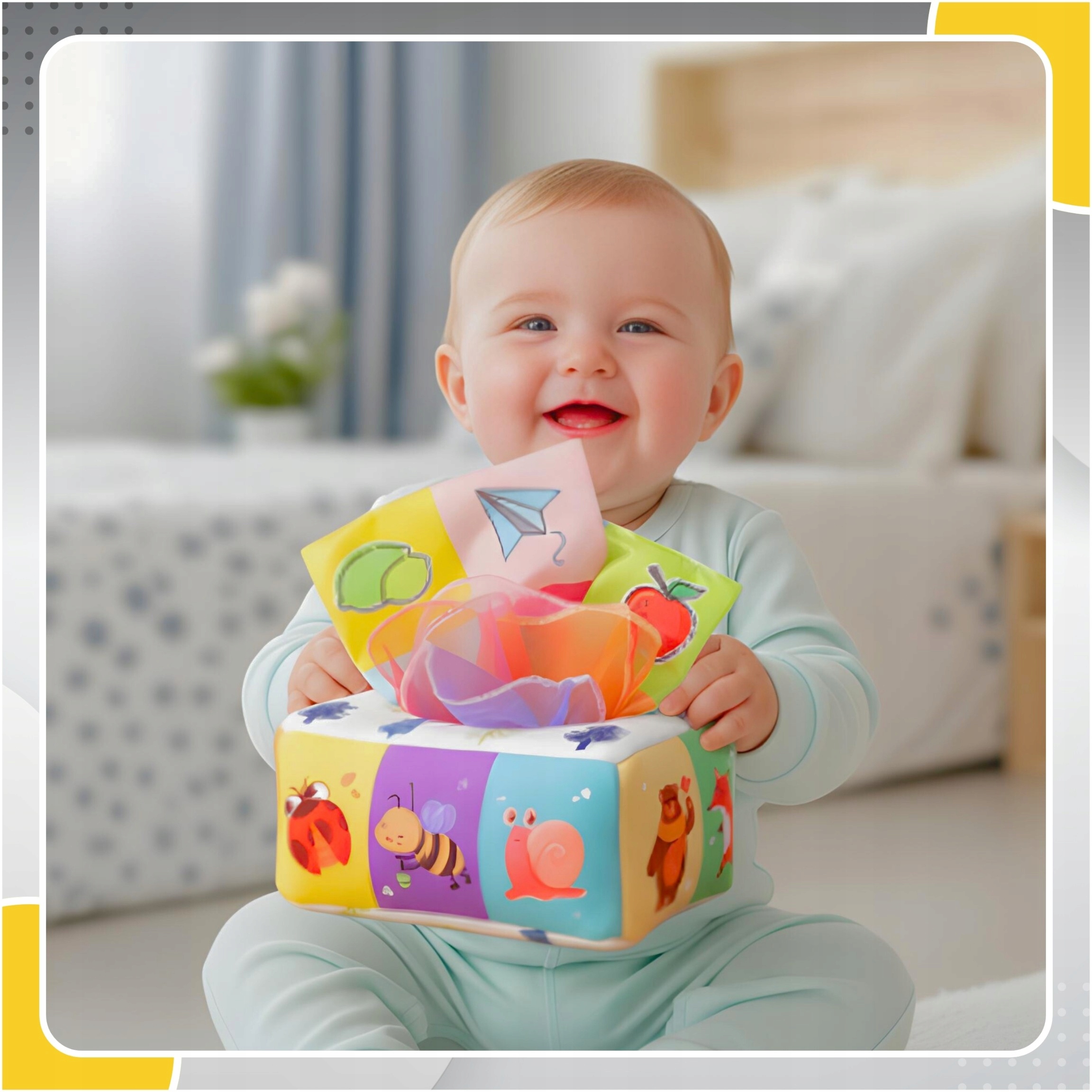 Інтерактивна форма — виймання та закладання серветок — ефективно захоплює малюка та допомагає йому зосередитися, зменшуючи нудьгу та тривогу.