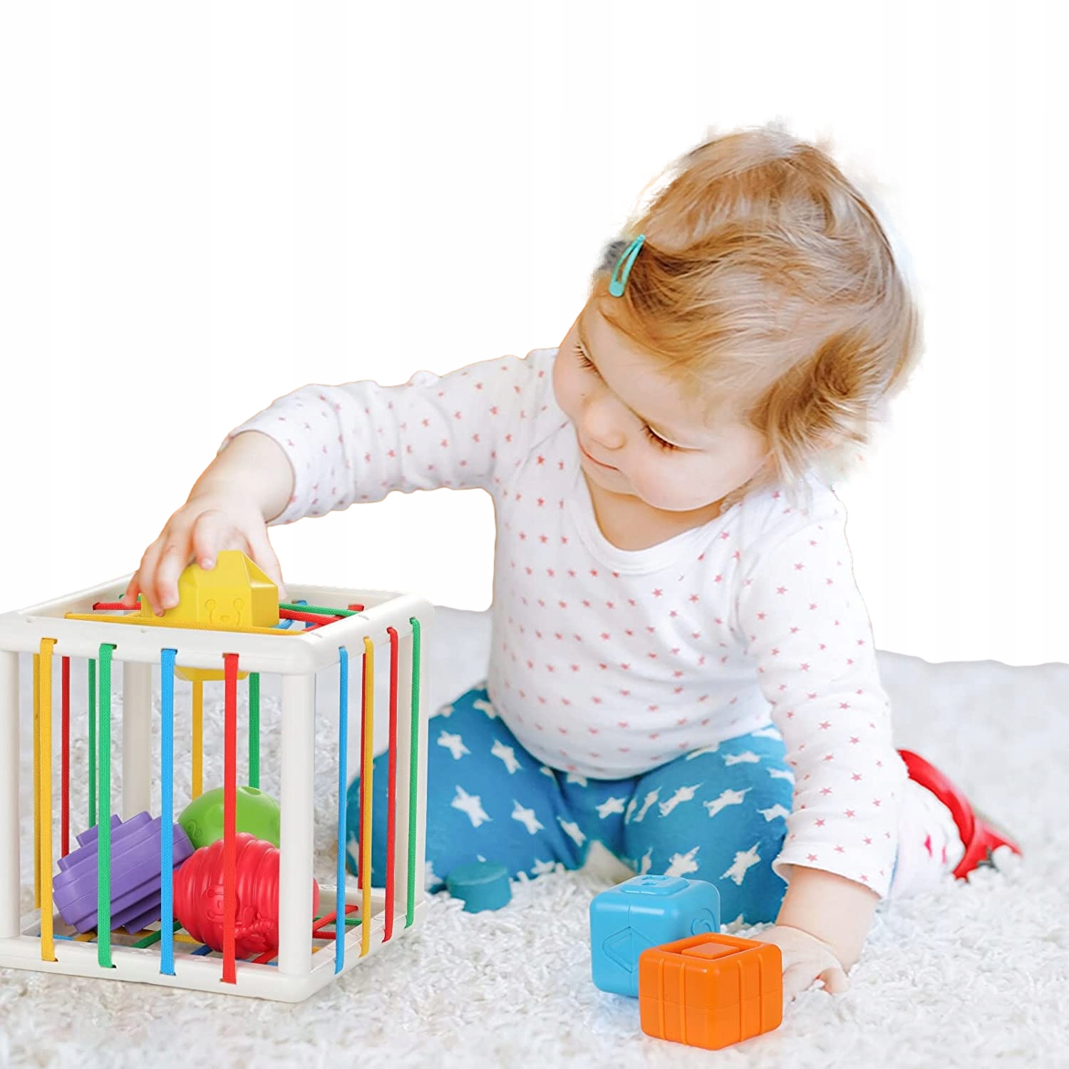 Коли дитина вставляє та виймає блоки з куба, стискаючи елементи через різнокольорові гумки - у стінах сортувальника народжується цікавість, а молодий розум навчається, відкриває, експериментує.