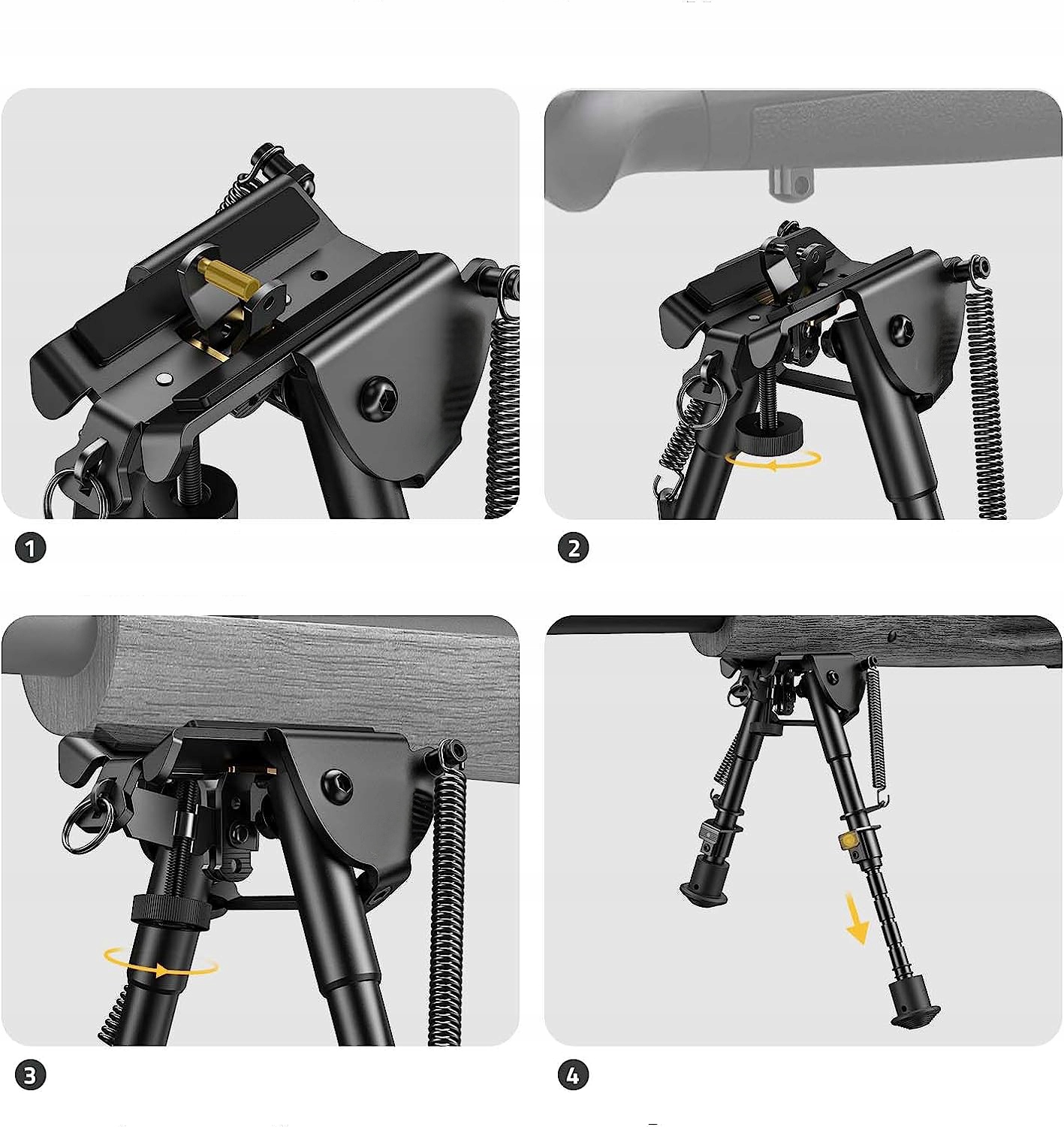 【Регульовані ніжки】: сошку гвинтівки можна подовжити від 6 до 9 дюймів. Відпустивши кнопку, ви можете легко та швидко налаштувати висоту відповідно до свого рівня.