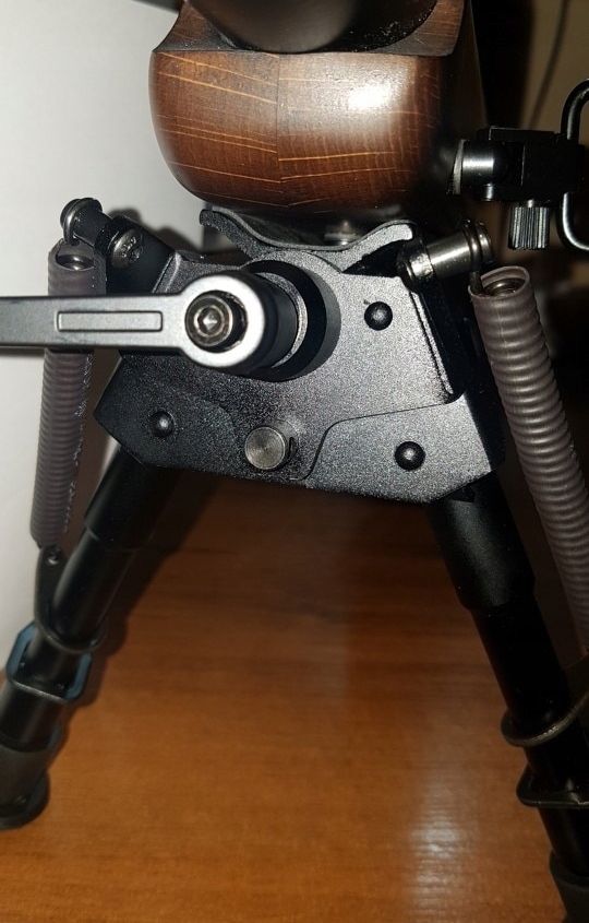 - рухоме з'єднання зі склом замок, що дозволяє легко позиціонувати зброю навіть на нерівних поверхнях,
