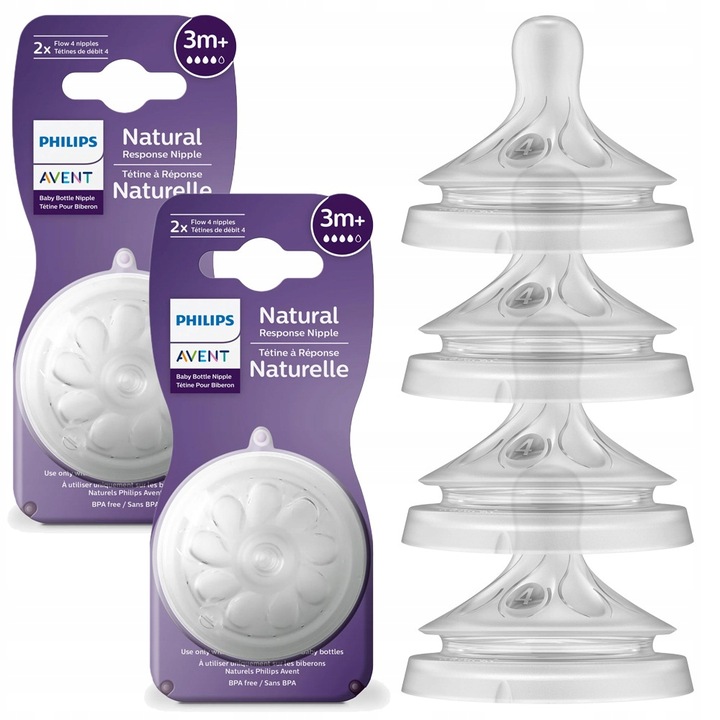Соска Avent для пляшки широка середня Philips Natural Response 3+ 4пак