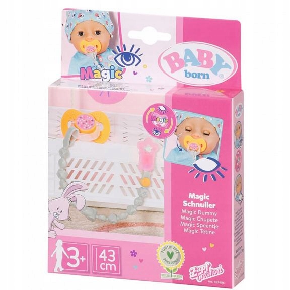 - Чарівна пустушка оснащена ланцюжком, який можна прикріпити до одягу BABY Born Magic, щоб ви ніколи її не втратили!