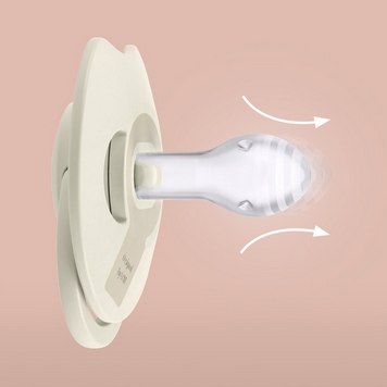 Динамічна пустушка завдяки своїй унікальній структурі з силікону різної товщини розтягується і стискається відповідно до ритму смоктання дитини. Завдяки цьому він захищає його смоктальний рефлекс і не робить негативного впливу на грудне вигодовування. Форма гумки симетрична і натхненна формою соска, щоб надати вашій дитині знайомі відчуття. Диск пустушки має спеціальний виріз для полегшення дихання носом і ковтання слини, як і у грудей. Контурний щиток якомога менше прилягає до шкіри дитини, що сприяє вільному проходженню повітря та знижує ризик подразнення шкіри.