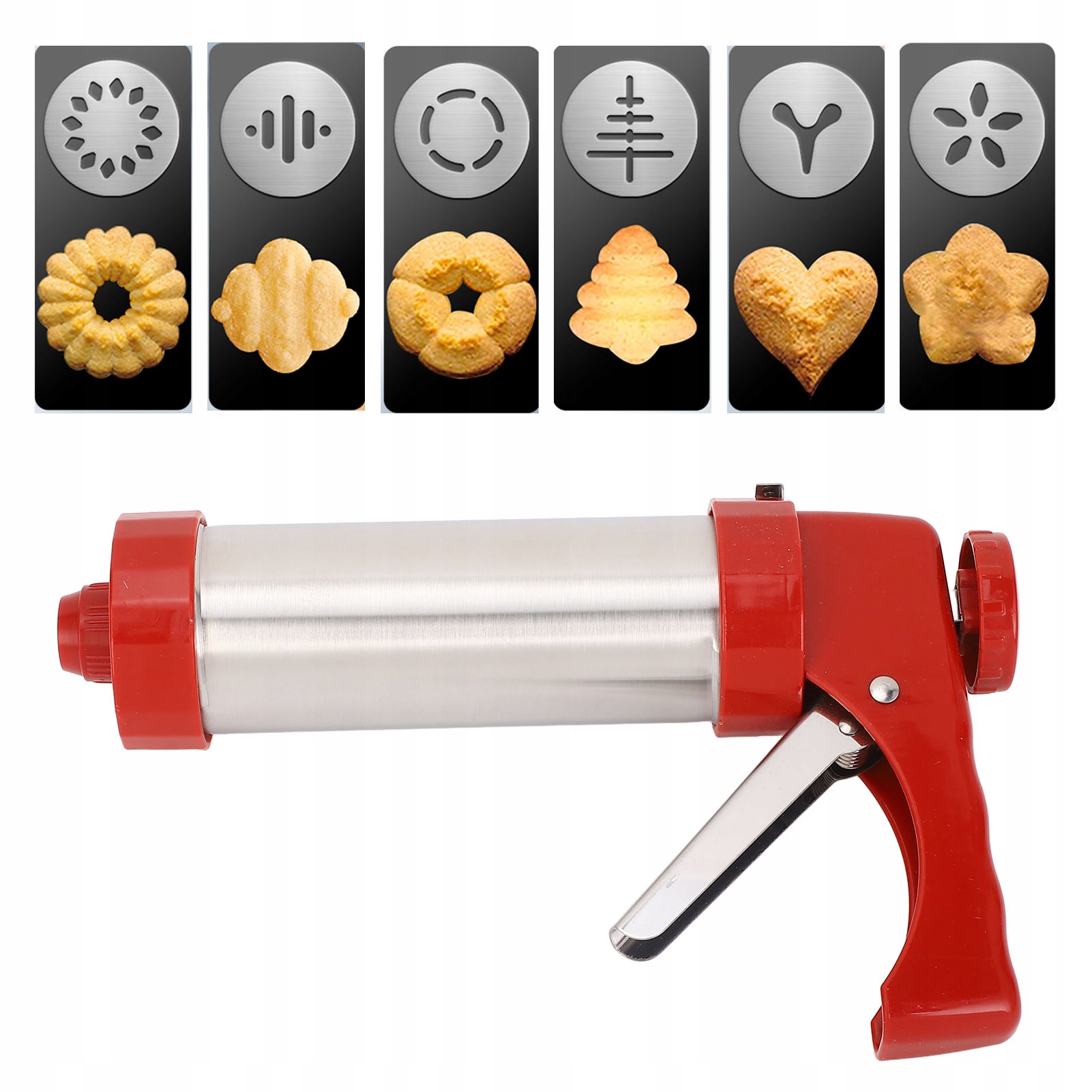 1. Простий у використанні: Press Cookie було розроблено для використання, що дозволяє створити різні торти тортів з мінімальними котами. Просто додайте тісто для натискання, виберіть бажаний диск або насадки, закріпіть його і стискайте. Матеріали: Виготовлені з нержавіючої сталі та абс, випічка печива вбудована таким чином. Товсті матеріали забезпечують підвищення міцності, гарантуючи, що ви, ймовірно, можете натиснути тісто, не турбуючись про видалення або пошкодження інструменту