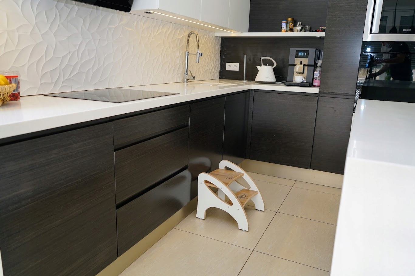 дозволяє дітям безпечно брати участь у підготовці їжі, допомагаючи розвивати незалежність та кулінарні навички. Для дорослих він підтримує, коли досягає більш високих шаф.