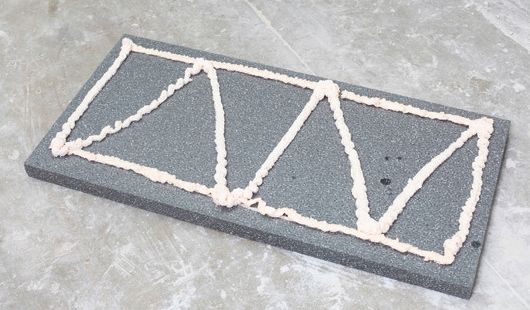 На великих елементах, таких як полістирольні ізоляційні плити, ламінатні плити, пробкові плити, панелі з мінеральної вати, гіпсокартонні та волокнисто-цементні плити, плити OSB, декоративні дерев’яні плити, листовий метал, елементи облицювання з каменю, плити з пластику або конгломерат, клей слід наносити плетеними плетенками діаметром 2-3 см. Проводимо смужку клею по периметру дошки, в декількох сантиметрах від її краю, а потім зигзагоподібно проводимо її по решті поверхні. Клей не стікає з вертикальних поверхонь і не вимагає грунтування основи.