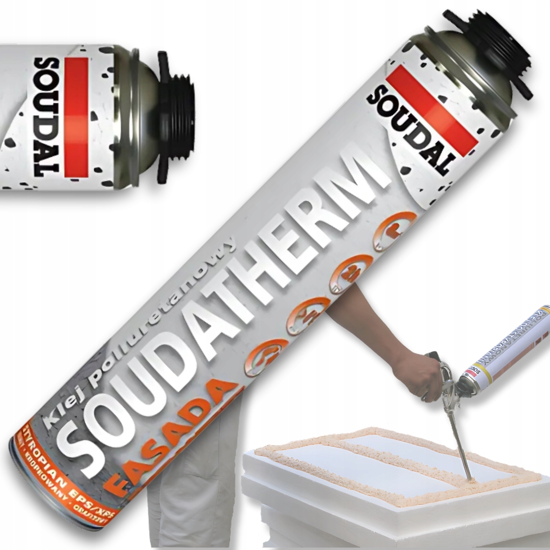 soudatherm fasad, клей з поліуретаном Soudal, є чудовим рішенням для встановлення ізоляційних плит, особливо полістиролу, завдяки його сильному зчепленню до різних будівельних матеріалів. Він зазвичай використовується для ізоляції будівель, включаючи підземні деталі, забезпечуючи заповнення прогалин та стиків між пластинами. Продукт знаходиться у вигляді аерозолю, і він повинен мати пістолет для апроберів. Однієї банки достатньо для 8м2. Фасад Soudatherm є водонепроникним та вогнестійким, що гарантує тверде кріплення навіть при низьких температурах (хв. +5 ° С у банку, хв. 0 ° C оточення). Крім того, він забезпечує високу теплову та акустичну ізоляцію, усуваючи теплові та акустичні мости. Використання клею Soudatherm дозволяє скоротити час і зменшити вагу потепління порівняно з традиційними методами.