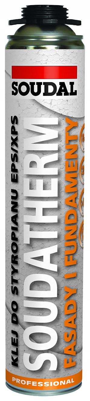 Soudatherm Facade від Soudal - це поліуретановий клей для пінополістиролу, який характеризується дуже хорошою адгезією до більшості будівельних матеріалів. Зазвичай використовується при складанні різних типів теплоізоляційних плит, а також при теплоізоляції по периметру підземних частин будівлі. З його допомогою ми також заповнюємо щілини і шви між теплоізоляційними плитами. Полістирольний клей Soudatherm Fasada – це аерозольний клей, що розпилюється. Однієї банки клею достатньо для кріплення до 8 м2 панелей. Soudatherm Facade є водонепроникним і негорючим, гарантує високу початкову міцність кріплення, навіть при низьких температурах (корпус мін. +5°C, навколишнє мін. 0°C), а також дуже хорошу тепло- і звукоізоляцію (не створює тепло- і звукоізоляцію мости). Полістирольний клей Soudal скорочує час роботи та знижує вагу ізоляції порівняно з традиційними методами.