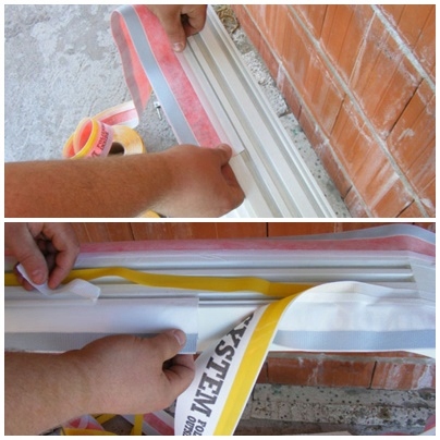 4. Приклеювання паропроникної стрічки до зовнішнього косяка