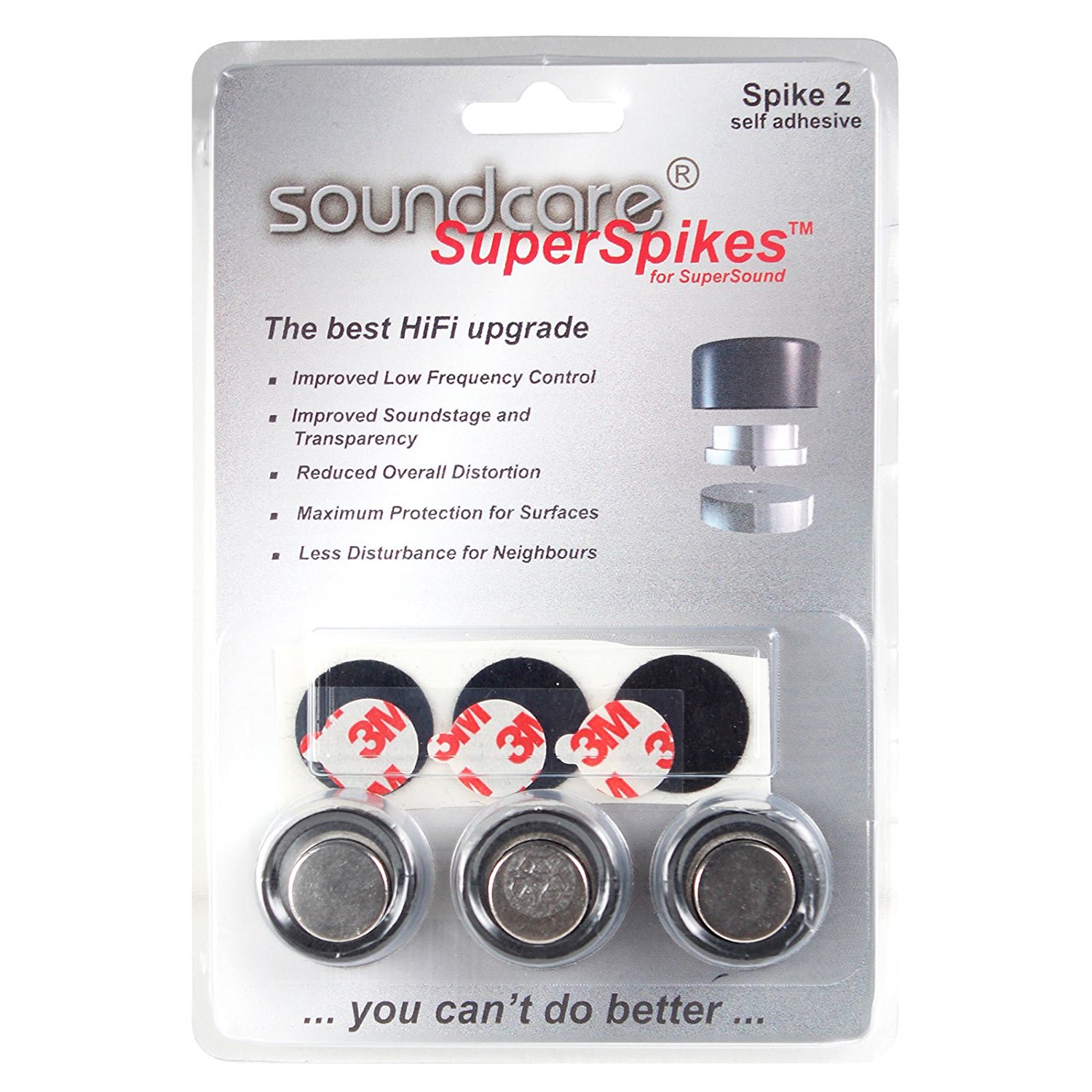 Soundcare SuperSpikes — це абсолютно нове рішення для основи обладнання Hi-Fi. Унікальна конструкція усуває поширену проблему при використанні звичайних шипів: пошкодження основи. Конструкція заснована на високоякісному шипі, розміщеному в спеціально розробленій основі, і все це посилено пластиковим хомутом. Завдяки такій конструкції користувач може переміщати своє обладнання, не пошкоджуючи підлогу.