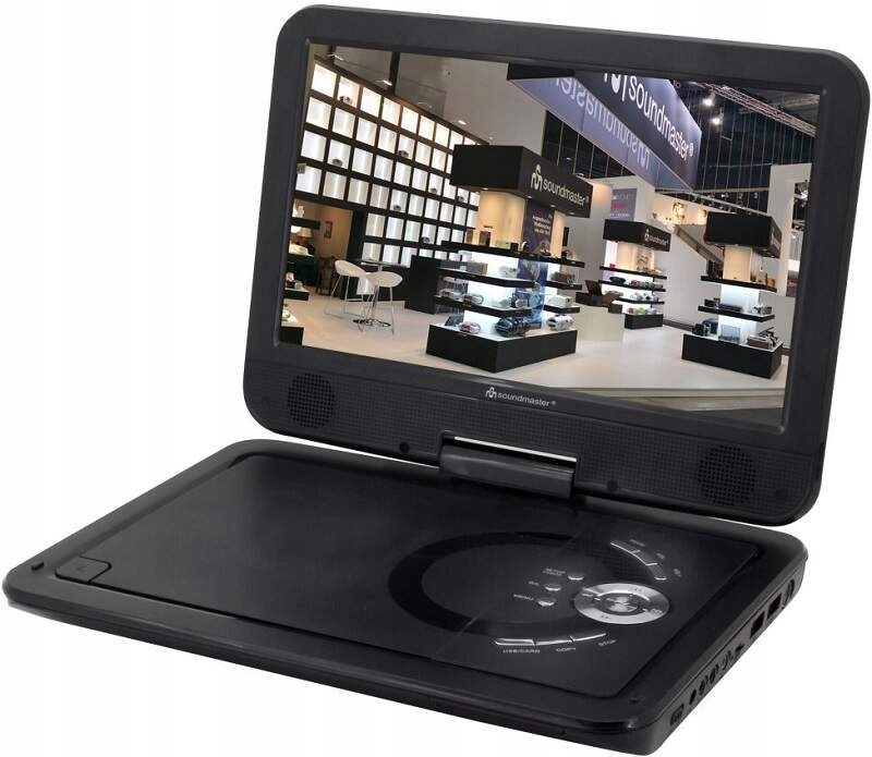 Портативний DVD-програвач Soundmaster PDB1910SW чорного кольору має поворотний 10,1-дюймовий дисплей, вбудований тюнер DVB-T2, стереодинаміки та вбудований акумулятор на 2500 мАг. Цей компактний портативний DVD-плеєр має поворотний 10,1" дисплей з роздільною здатністю 1024 × 600 або вбудований тюнер DVB-T2 HD і пропонує можливість відтворювати як DVD, так і CD. Пристрій оснащений стереодинаміками, роз'ємом для навушників, парою USB-входів і пристроєм для читання карт пам'яті. Особливістю є 300 ігор, які ви знайдете на компакт-диску, що додається. Живлення забезпечує вбудований Акумулятор 2500 мАг. Портативний DVD-плеєр, Діагональ: 25,6 см, TFT-дисплей, 1280x800, DVB-T2/H.265, Вбудований ТВ-тюнер, Динамік, DVD-привід, Тип носія: USB, Пристрій для читання карт пам'яті, USB-порт, 1 × вихід для навушників, 1 × USB-порт.