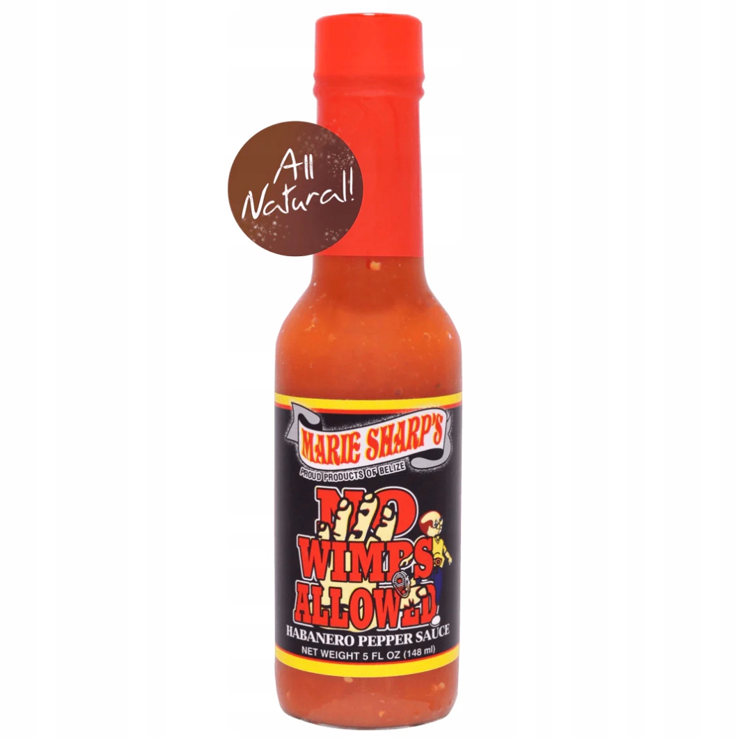 Рекомендовано для тих, хто їсть гострі страви середнього рівня - він буде ідеальним для щоденного використання практично для будь-яких страв! Піца, бургери, курка... чи, може, пельмені чи свинячі відбивні? Спробуйте його з будь-якою стравою, яку ви любите - Марі Шарп «No Wimps Allowed»покращить його смак і силу! Чудова добавка до супів, соусів, смажених і приготованих на грилі страв, морепродуктів і пасти.