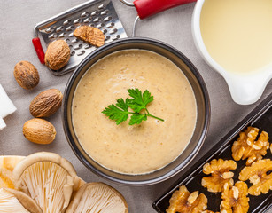 крохмаль модифікований Е1412, мальтодекстрин, сухе молоко, рослинний жир, препарат відбілювач (рослинна олія, глюкозний сироп) підсилювач смаку: мононатрій глутамін, дріжджовий екстракт, ароматизатори, часник, перець, лавровий лист, екстракти спецій