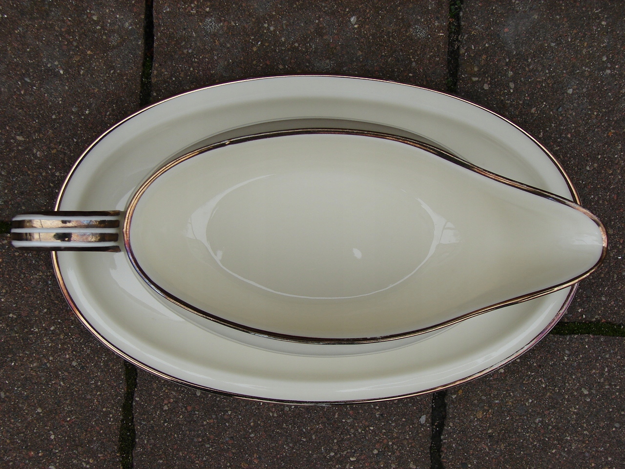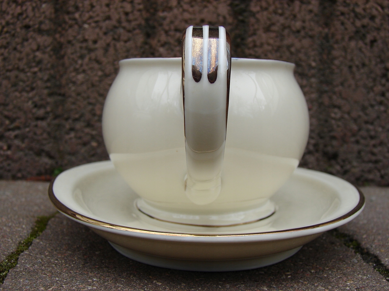 Соусник - фарфор кольору екрюоздоблений старим золотом.