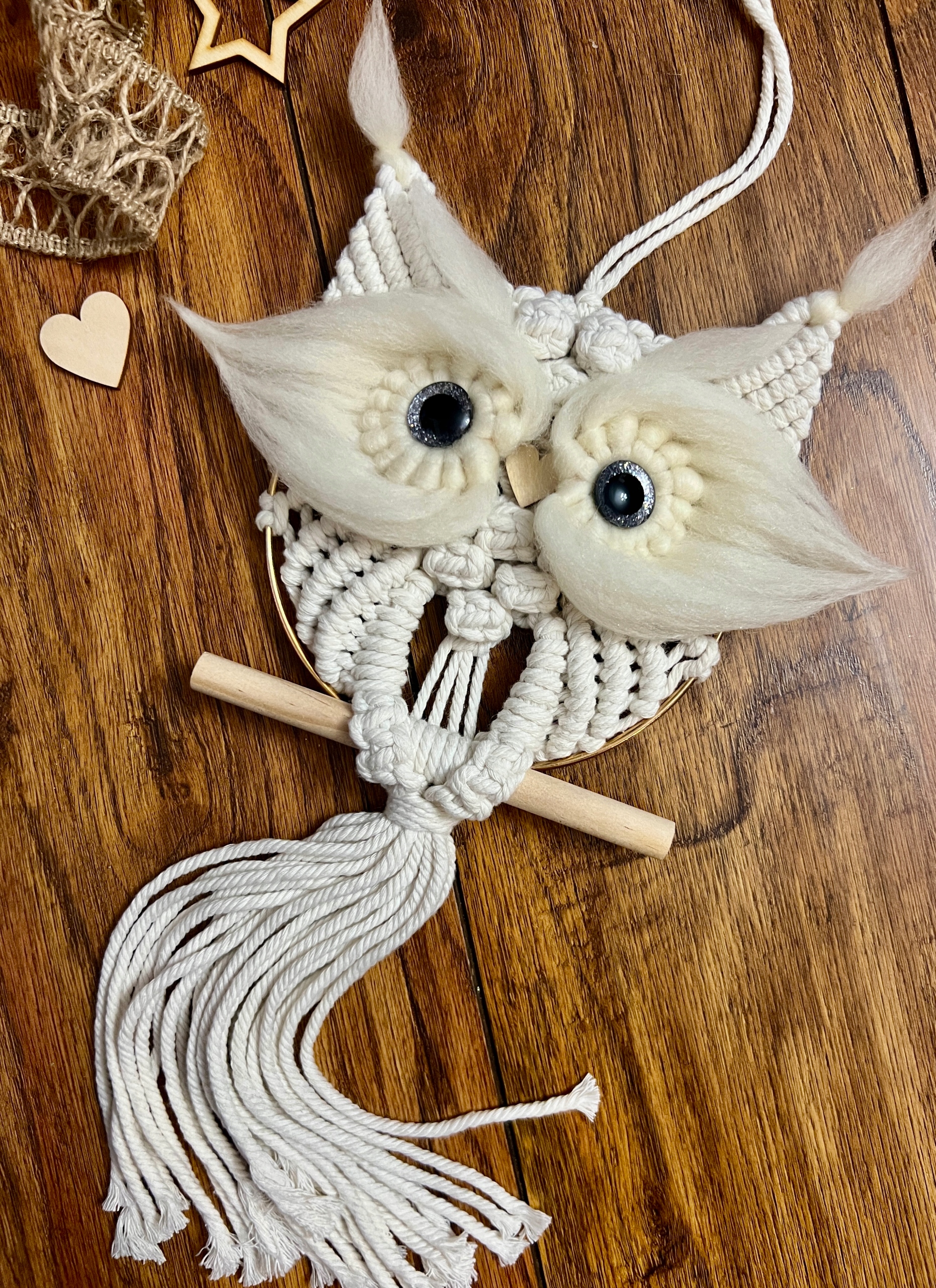 Сова зі шпагату прикраса бохо макраме для стіни