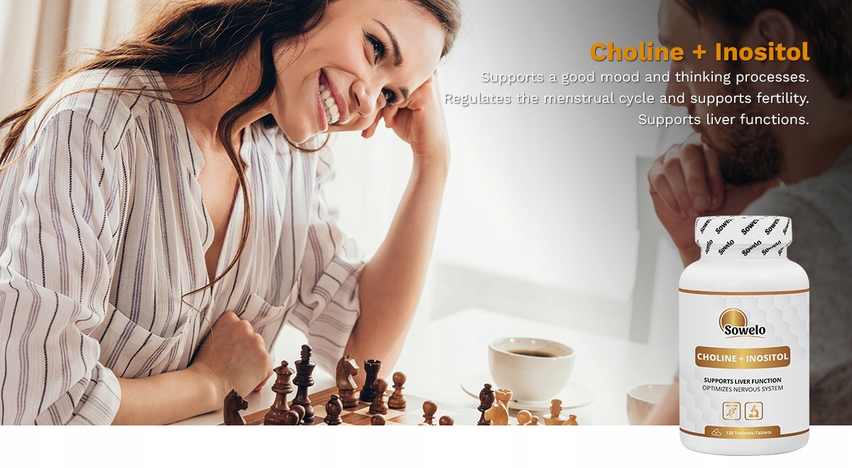 SOWELO CHOLINE + INOSITOL це дієтична добавка, яка містить 250 мг холіну та 250 мг інозитолу в одній порції.