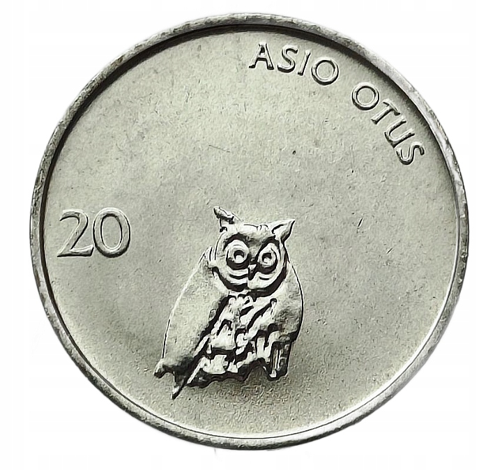 SŁOWENIA 20 STOTINOV 1992 PTAK SOWA USZATKA - MENNICZA