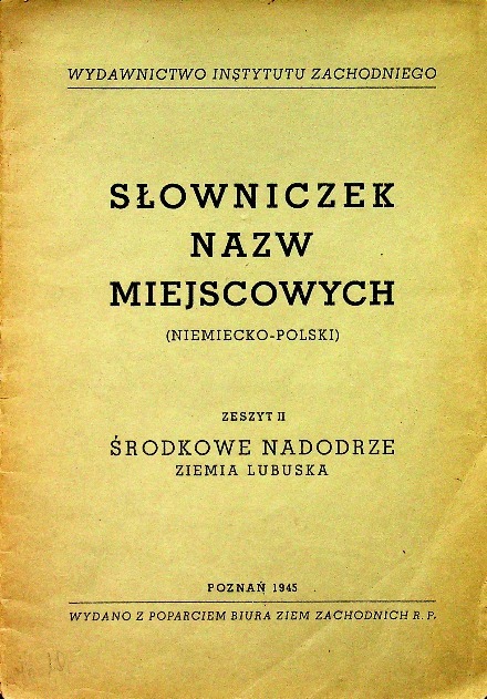 «Цей глосарій охоплює ті місцеві назви в Середньому Одері, переважно в Любуській землі, які мають або мають польських тезок...»