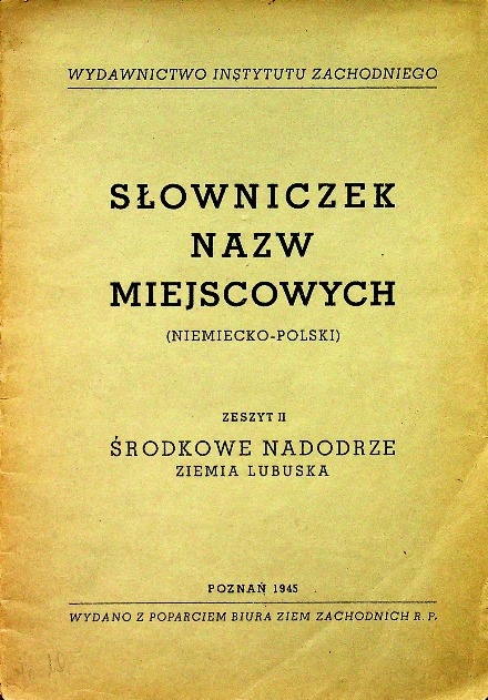 Глосарій топонімів, том II Центральна річка Одра, 1945