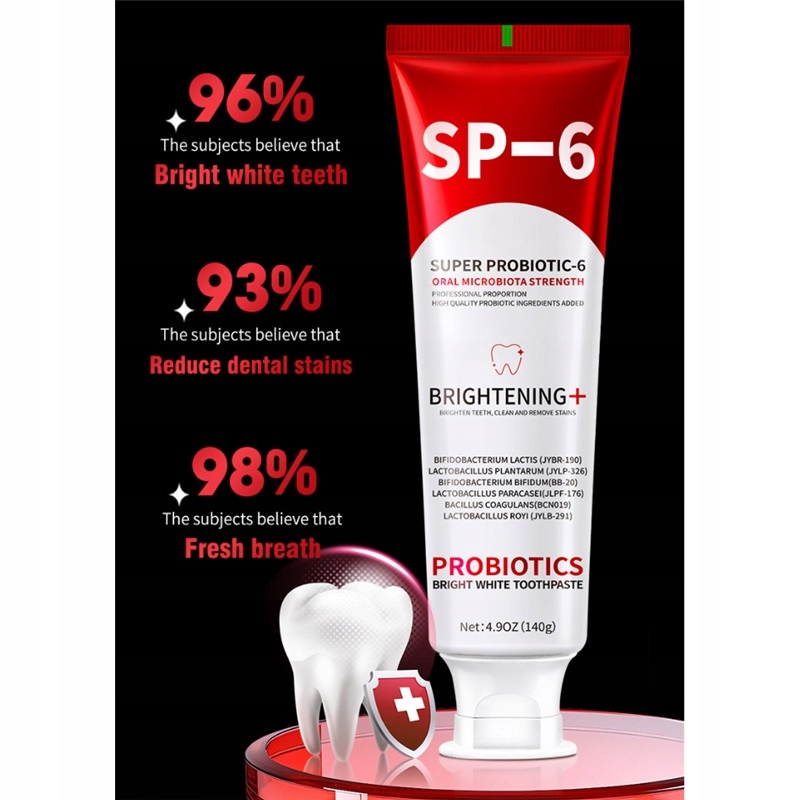 ✔️Зубна паста SP-6: ця зубна паста містить покращену формулу з 6 видами пробіотиків, ефективно видаляє плями на зубах, зменшує неприємний запах з рота, запобігає карієсу та захищає здоров’я порожнини рота