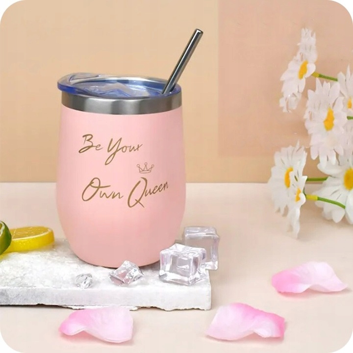 - ☕ теплова кухоль з написом "Будьте власною королевою" + металева солома