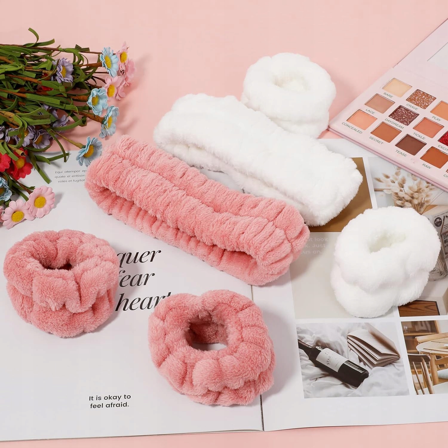 Пов'язка допомагає підтримувати волосся під час косметичних процедур та макіяжу, а напульсники не дають воді стікати по руках під час миття обличчя.